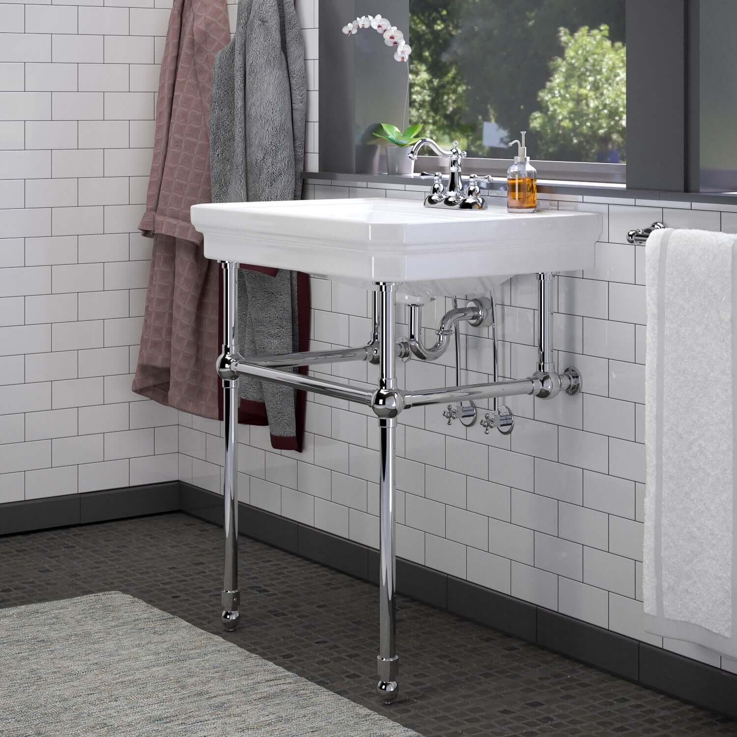 Bridge-style faucets that fit a traditional 8" widespread sink.