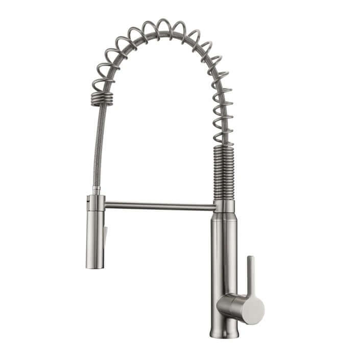 Kitchen faucets with a pull-out sprayer built into the spout.