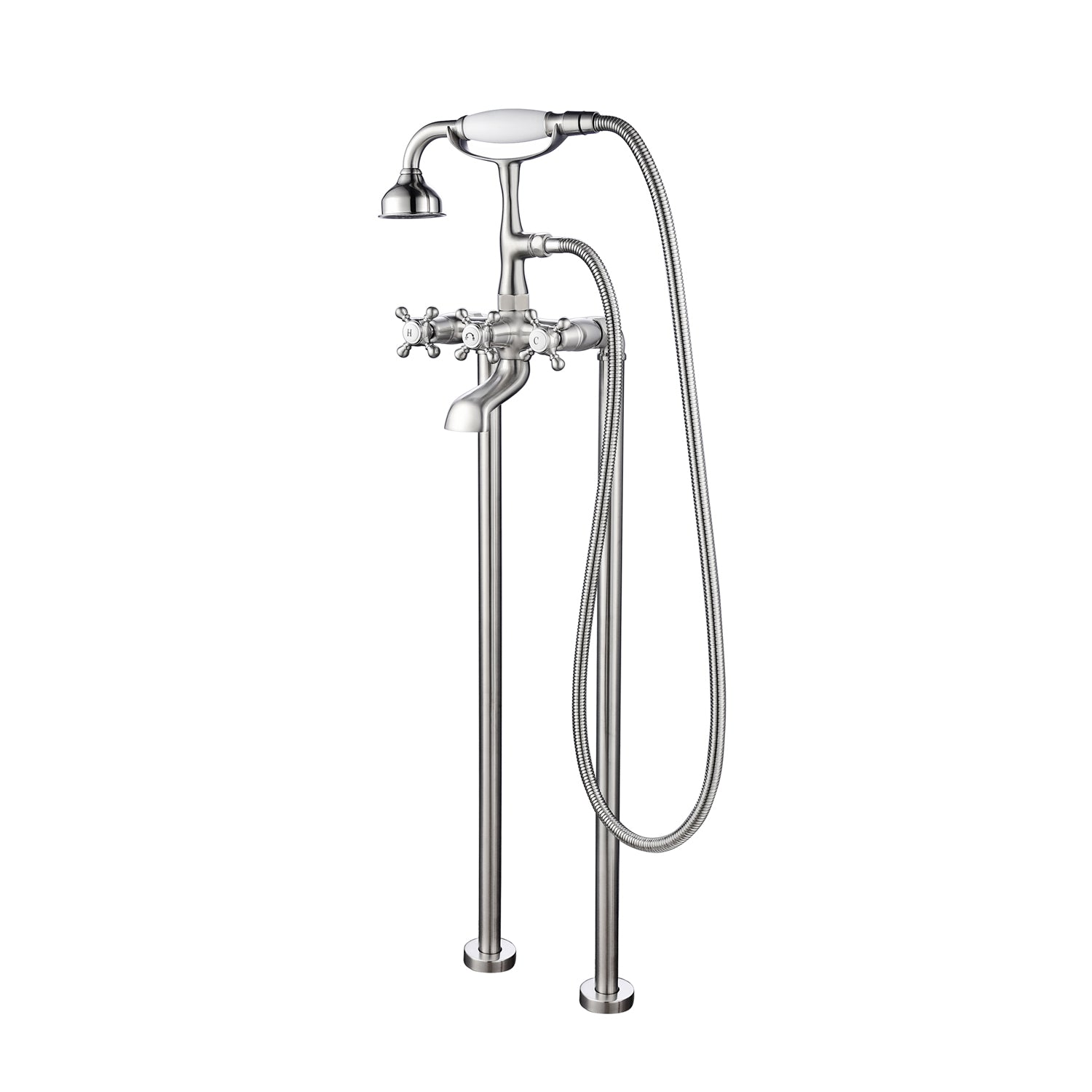 Floor-Mounted Wide Spout Tub Faucet with Hand Shower in Brushed Nickel