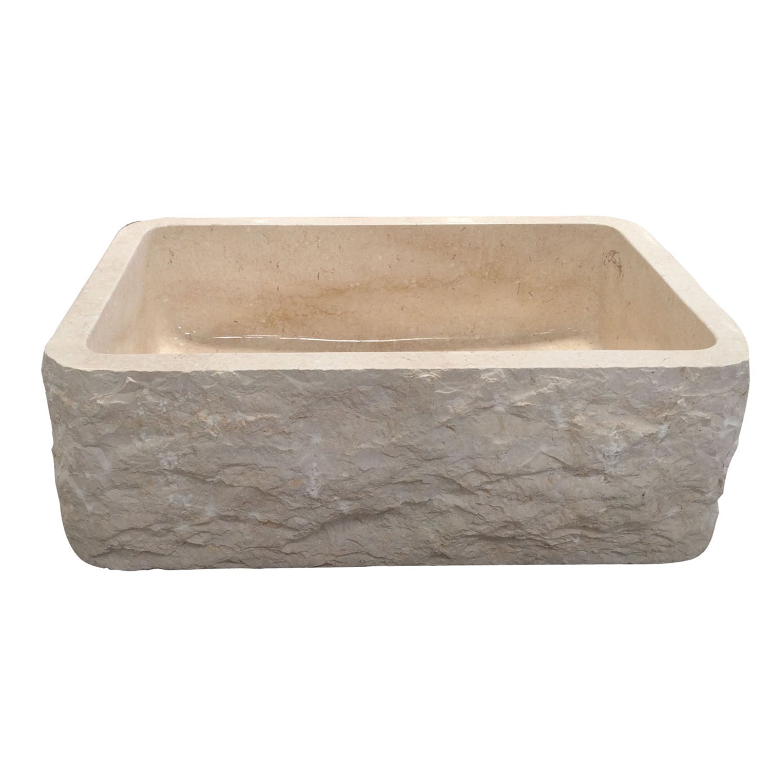 Make a stylish addition to your contemporary kitchen with the McKinley Single Bowl Farmer Sink from Barclay. Combining a sleek polished interior with a dramatically chiseled front, this sink creates a stunning effect. As each sink is uniquely crafted from all-natural marble, you are also investing in a unique work of art which will grace your home for many years to come. Handcrafted from natural marble Overall dimensions 36" W X 20" D X 10" H Basin interior 33" X 17" Basin depth 8-1/2" Unpolished chiseled front Polished back and sides accommodates 3-1/2" drain Each sink has unique variations in stone UMSPT supports need to be purchased separately.